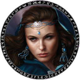 Smaller than average height, slender woman with fair skin and brown hair. She wairs a holy symbol of Lumine on her forehead, dangling from a chain woven into her hair.